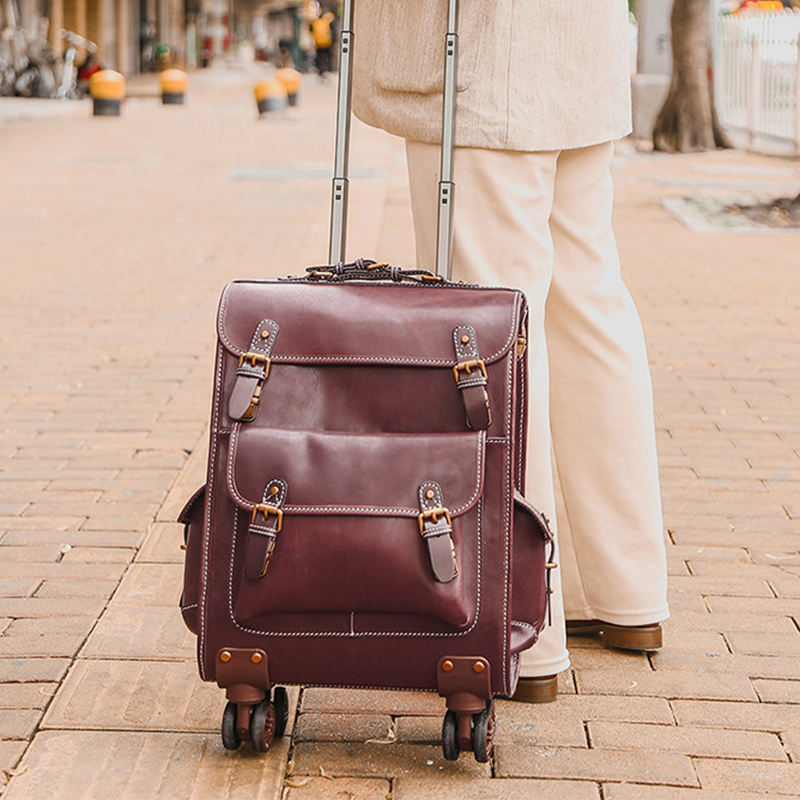 Business Office Carry-Ons Zippers Wheeled Design Suitcase Travel Bags Durable Leather Suitcase